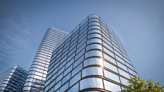 Третий корпус станет частью разновысотного архитектурного ансамбля бизнес-центра, спроектированного мастерской ADM Architects. Фасады, выполненные из металла и моллированного стекла, совершают плавный поворот вокруг центральной оси, за счет чего композиция выглядит динамично. Энергоэффективное остекление будет защищать внутренние пространства от прямых солнечных лучей, обеспечивая естественное освещение и комфорт в помещении. Каждый лот оснащен как минимум одной открывающейся оконной створкой для проветривания.